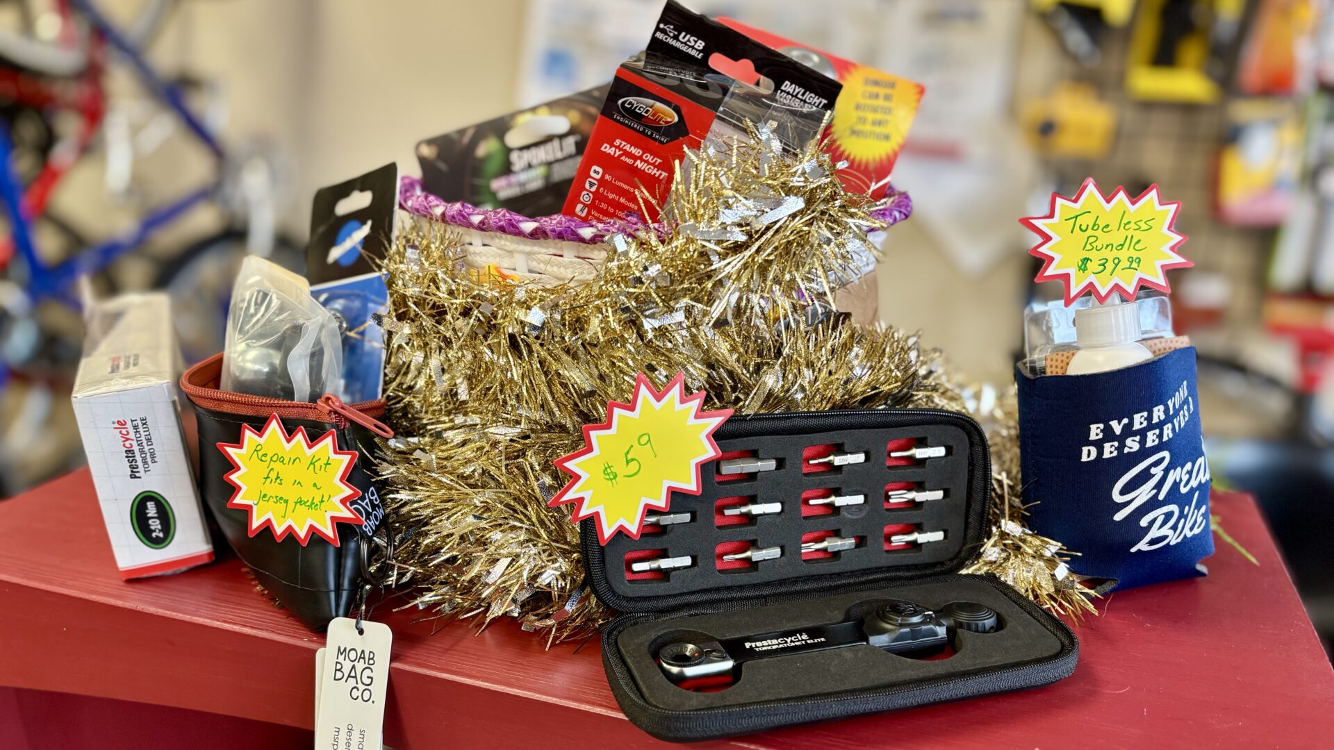 More gift ideas from Shifting Gears Bike Shop. This repair kit bundle includes the Lezyne Repair Kit with CO2 canisters and inflator, tire levers, and patch kit; the Park Tool IB-2 multi-tool; all held in a durable zipper pouch from Moab Bag Co. The PrestaCycle Torqratchet Elite makes a great gift for that special person…