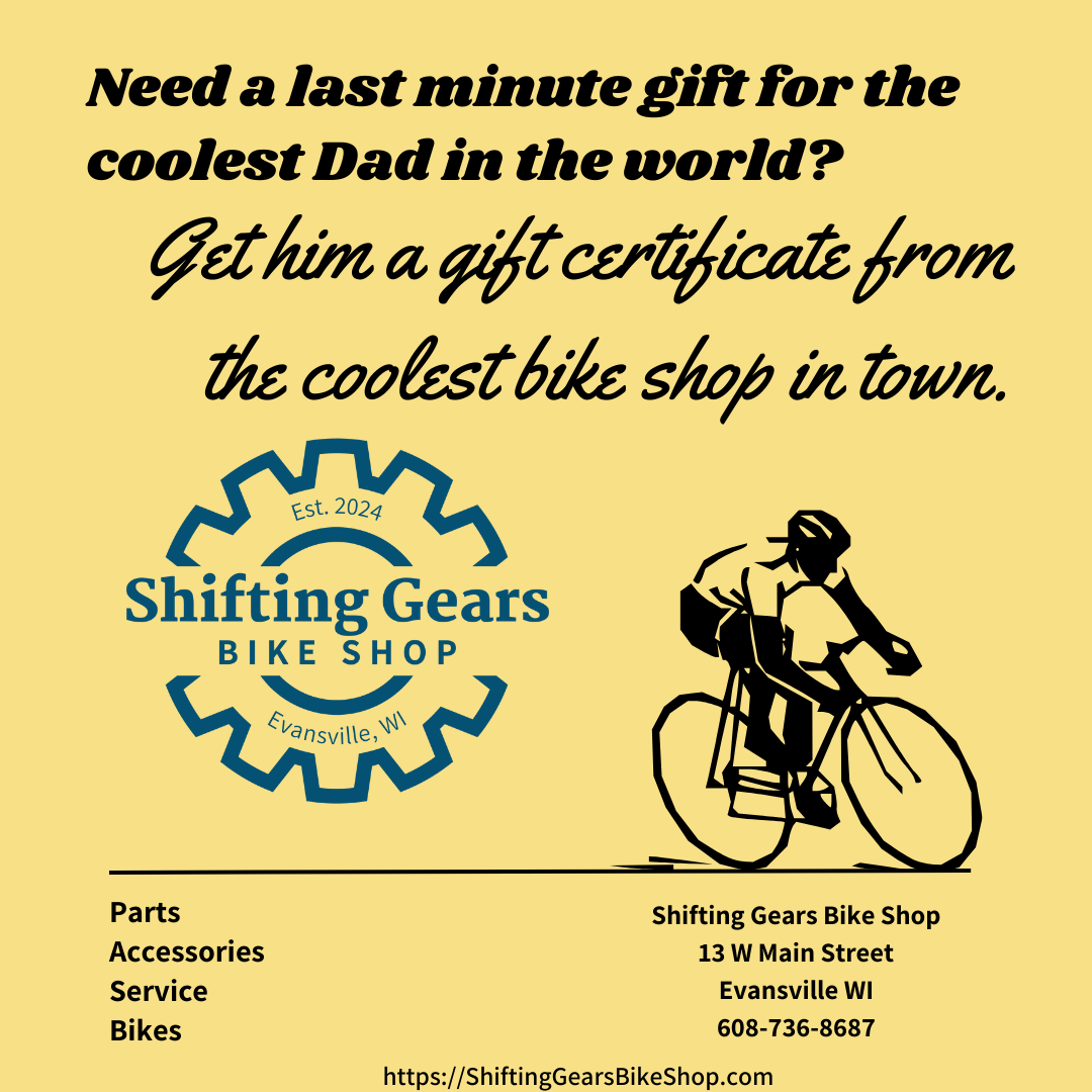Dad already has a great bike he loves? Get him a tune-up. No place to stash his phone on the bike? How about a seat bag or phone holder? Tired of him calling you when he gets a flat on a ride? We can put a safety pack together that will get hime back home…