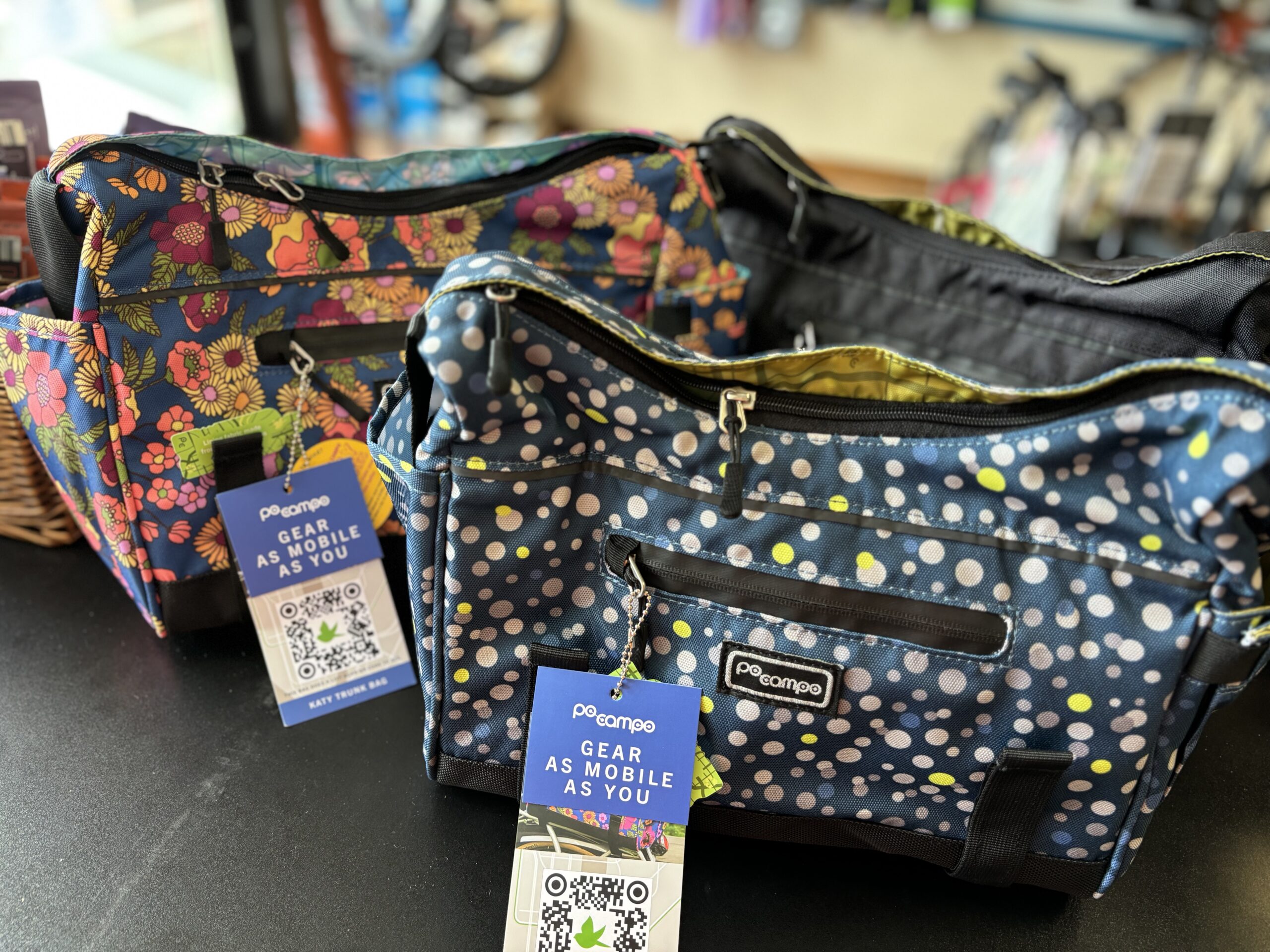 New bags in stock! These are super cute and functional bags from Po Campo. These go from bike bags (handlebar or trunk style) to crossbody bags with the included straps. Come check them out!