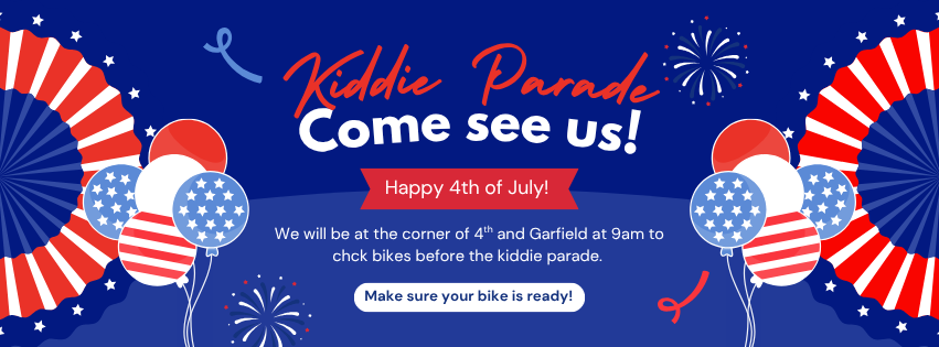 We will be at the corner of 4th and Garfield again this year to check bikes before the 4th of July Kiddie Parade!